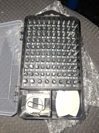 Práctico kit de destornillador de precisión con varias puntas y herramientas. - Mango ergonómico. - Incluye extensiones y adaptadores. - Estuche organizador.