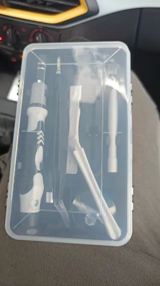 Estuche compacto con herramientas de precisión para destornilladores. - Incluye mango de destornillador. - Variedad de puntas. - Pinzas de precisión. - Herramienta de palanca.