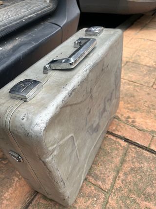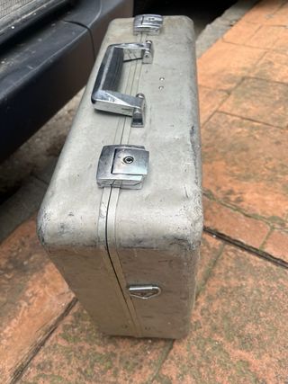 Maletín metálico de estilo vintage, ideal para guardar y transportar herramientas. - Construcción robusta en metal. - Acabado en color gris mate. - Asa de transporte cromada. - Cierres de seguridad metálicos.