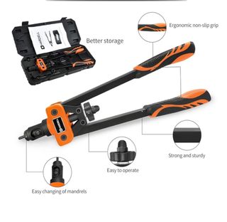 Remachadora manual en excelentes condiciones. Incluye estuche para mejor almacenamiento. - Mango ergonómico antideslizante para mayor comodidad. - Estructura robusta y resistente. - Fácil cambio de mandriles. - Operación sencilla.