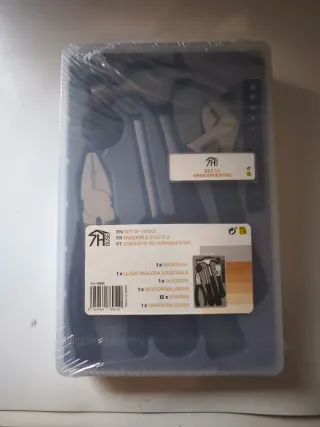 Este set de herramientas incluye 17 piezas esenciales para diversas tareas. - 1 Martillo - 1 Llave inglesa ajustable - 1 Alicates - 1 Destornillador - 12 Puntas - 1 Tapón de goma