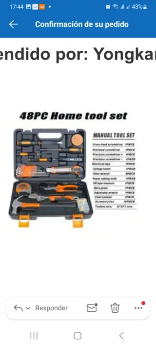 Set de herramientas manuales de 48 piezas, ideal para el hogar. Incluye una caja organizadora. - Destornilladores (varios tipos) - Alicates - Llaves Allen - Cinta métrica - Cúter - Martillo - Destornillador de voltaje - Cinta aislante - Caja de accesorios - Tamaño de la caja: 32*23*7.5cm