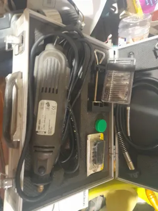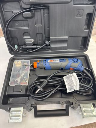 Se vende herramienta rotativa eléctrica en su maletín. - Incluye varios accesorios y brocas. - Manguera flexible. - Diseño compacto y portátil.