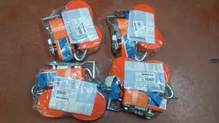 Conjunto de cinchas de sujeción de color naranja brillante, ideales para asegurar cargas. - Hebillas metálicas para un ajuste seguro. - 2 metros de largas x 2cm ancho -Dispongo de muchas mas -Precio por unidad 1€