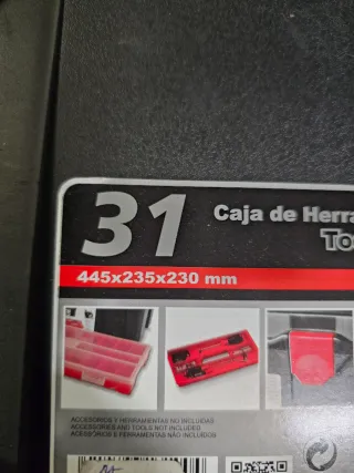 Maleta de herramientas de plástico resistente, ideal para organizar y transportar tus herramientas. - Color negro con asa roja. - Cierres de seguridad rojos. - Compartimentos interiores para organización.