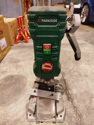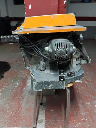 Sierra de mesa para trabajos de ebanistería y carpintería. Ideal para cortes precisos. - Motor eléctrico. - Superficie de trabajo. - Patas plegables para fácil almacenamiento.