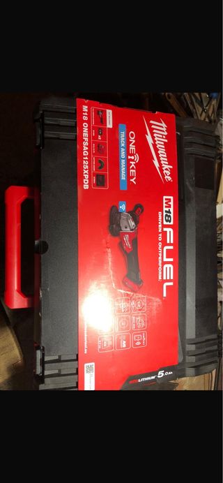 Amoladora radial Milwaukee M18 FUEL con tecnología ONE-KEY. - Modelo: M18 ONEFSAG125XPDB - Batería: LITHIUM 5.0Ah - Incluye estuche de transporte. 2 barerias y cargador carga rapida