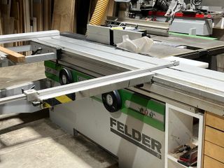 SOLO VENTA EN PERSONA Máquina combinada Felder 741S para trabajos de carpintería y ebanistería. Buena ESCUADRADORA con incisor, con inclinación 45º en disco y carro. Carro bandera grande ideal para trabajar también en el TUPÍ inclinable y con reversa, para espigados etc... de piezas grandes sin peligro de vuelco. Alimentación automatica de 3 rodillos 4 velocidades y reversa. Accesorios varios. CEPILLADORA y REGRUESO de 400mm cuchillas sistema TERSA. - Modelo CF 701 S. - Diseño robusto y profesional, de lo mejor en este tipo de maquinas.