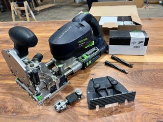 SOLO VENTA EN PERSONA Ensambladora de espigas Festool DF 700 EQ Plus. - Modelo: DF 700 EQ Plus (es la grande) - Incluye accesorios. - Caja original. Para cajear ensamblajes de espiga de madera y herrajes desmontables de la marca, me quedan algunos.