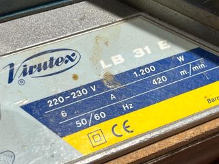 Lijadora de banda Virutex modelo LB 31E. SOLO VENTA EN PERSONA - Voltaje: 220-230 V - Potencia: 1.200 W - Velocidad: 420 m/min. - Amperaje: 6 A - Frecuencia: 50/60 Hz