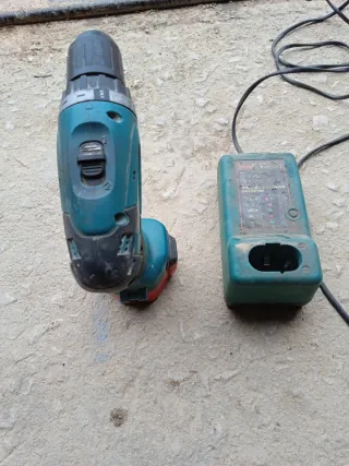 Taladro atornillador inalámbrico Makita, ideal para trabajos de bricolaje y profesionales. Incluye batería y cargador. - Taladro atornillador Makita. - Batería. - Cargador.