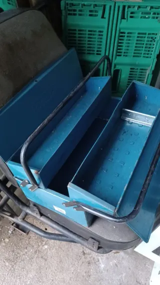 Caja de herramientas metálica con varios compartimentos para organizar tus herramientas. - Construcción robusta de metal. - Diseño con múltiples divisiones internas.
