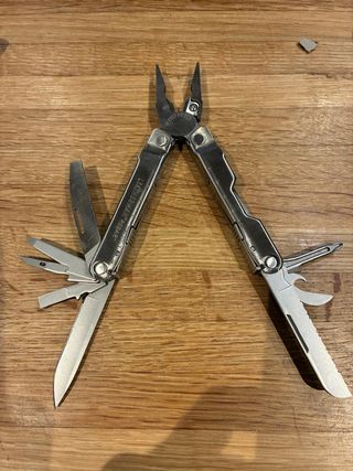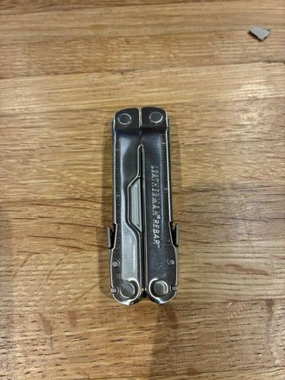 Herramienta multiusos de acero inoxidable, ideal para reparaciones y tareas diversas. Compacta y resistente. - Alicates - Cuchilla - Lima - Abrebotellas - Destornillador