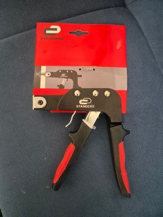 Herramienta para la colocación de tacos de expansión. - Marca Standers. - Mango ergonómico con detalles en rojo. - Cuerpo metálico. - Incluye varias puntas de remache.