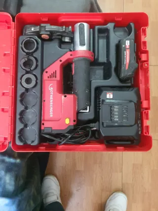 Herramienta profesional para instalaciones multicapa. - Incluye maletín rojo. - Batería ROTHENBERGER 18V Li-Ion. - Cargador CAS. - Juego de mordazas.