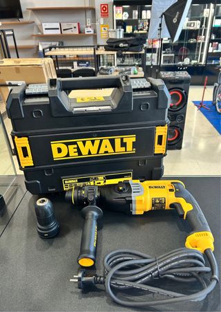 REF: 61804 Martillo perforador combinado DeWalt D25144K con su maletín. 900W de potencia ARTÍCULO A ESTRENAR. - Incluye maletín de transporte. - Mango auxiliar. - Portabrocas. Realizamos envíos combinados. 1 AÑO DE GARANTÍA Somos Acerto Segunda mano, tienda de compra-venta y empeños, situada en C/ Santiago de Compostela 20, Roquetas de Mar, Almería. Hacemos envíos en península, Baleares y la mayor parte de Europa. Los artículos reflejados en este anuncio tienen el IVA incluido y está acogido al régimen especial de bienes usados.