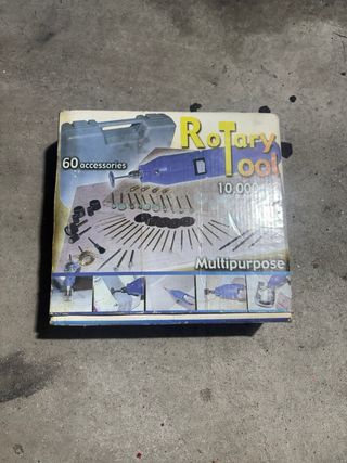 Kit de herramienta rotatoria multiusos con 60 accesorios. - Incluye estuche para guardado. - Ideal para trabajos de precisión y manualidades. - Velocidad de 10,000 RPM.