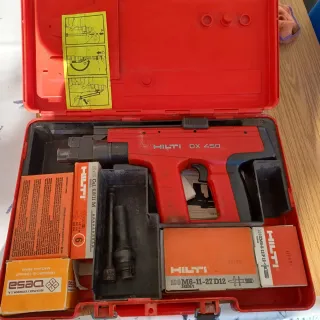 Pistola clavadora HILTI DX 450. - Incluye maletín rojo para su transporte y almacenamiento. - Manual y accesorios