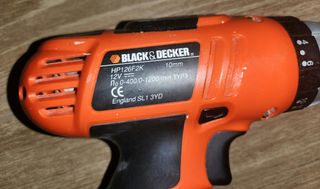 Atornillador de la marca Black & Decker con barería, maletín y cargador.