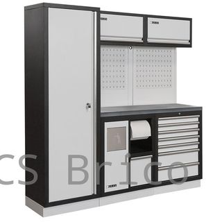 MODULO ESQUINERO DE CONJUNTO DE ARMARIOS DE TALLER S/MADERA 192841 DESCRIPCION: - Armario superior y armario base sólidos muy válidos par ambientes de taller con herramientas pesadas. - El armario base, al disponer de cerradura, permite guardar herramientas valiosas con seguridad. - La base de madera permite colocar herramientas y realizar trabajos sobre ella, por su firmeza y rigidez. Los paneles perforados permiten colgar herramientas con ganchos y los pilares fijan y dan rigidez al conjunto. - Forma parte de los conjuntos modulares y pueden realizarse combinaciones de armarios y módulos según necesidades. - Conjunto enviado...