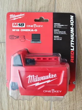 PVP: 146€ Adaptador Milwaukee M18 ONE-KEY (M18 ONEKA-0) completamente nuevo, ideal para gestionar tus herramientas profesionales. Características principales: Compatibilidad: Funciona con todas las crimpadoras hidráulicas M18™ FORCE LOGIC™. Funcionalidad: Conecta la herramienta a un ordenador para diagnósticos y generación de informes (reporting). Incluye: Cable USB 2.0 a Micro USB de 45 cm. ¡Perfecto para profesionales que quieren mantener un registro digital de sus equipos!