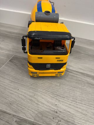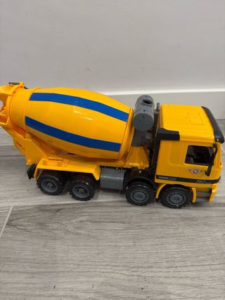 Camión de juguete tipo hormigonera. - Color amarillo brillante. - Tambor giratorio. - Detalles de camión real.