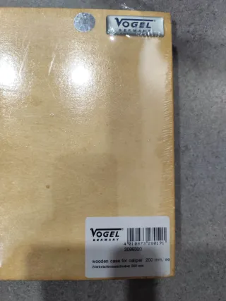PVP:40€ Estuche de madera original de la marca Vogel Germany, modelo 2099320. Es compatible con calibres pie de rey de hasta 200 mm de largo. Ideal para el almacenaje protegido y transporte de tu herramienta de medición de taller. Material: Madera con interior acolchado de espuma. Estado: Nuevo, sin usar, con sus plásticos.