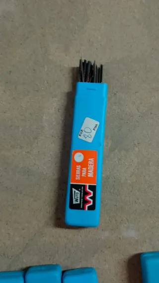 Conjunto de diez sierras de marquetería de la marca Wuto, diseñadas para trabajos de precisión. - Sierras para madera. - Modelo: Sierras Espirales y más. - Marca: Wuto.