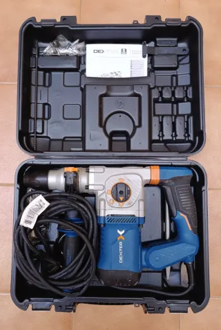 Martillo perforador de 1500W de potencia; ideal para trabajos de construcción, demolición y perforación. Se encuentra en perfecto estado y listo para utilizar (solo se ha usado una vez). Se entrega en su maletín original. - Incluye maletín de transporte. - Mango auxiliar para mayor control. - Cable de alimentación. - Potencia: 1500W.