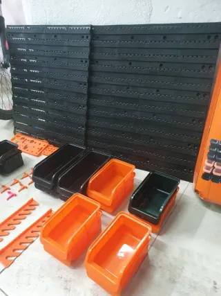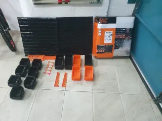 Sistema de organización para herramientas de la marca Black & Decker. Organizador de herramientas de la marca Black and decker. Se compro nuevo hace 1 mes y se ha instalado en una pared pero como no me convencía lo he desmontado y lo vendo por lo que esta como nuevo en perfecto estado. Falta 1cubo de almacenamiento de los pequeños y hay un gancho y un cubo mediano que tienen color diferente al original. Soporte para llaves, soporte para puntas y soporte para pequeñas herramientas. No incluye tacos y tornillos. Colgador, pared, martillo, taladro, organizador, cuadro, trabajo, garaje, trastero