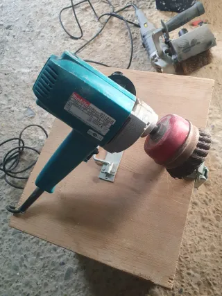 Taladro eléctrico Makita en su maletín original, listo para usar. - Incluye maletín de transporte. - Set de brocas para metal. - Mango auxiliar.