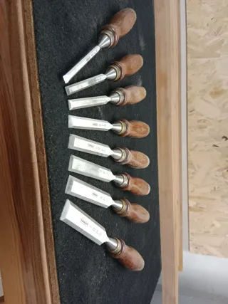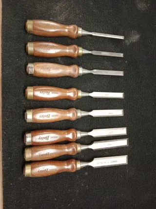 Vendo juego de formones Stanley Bailey originales, de gran calidad y precisión, ideales para carpintería, ebanistería y trabajos de madera en general. 📏 Medidas incluidas: 8 mm, 10 mm, 12 mm, 15 mm, 18 mm, 20 mm, 22 mm y 25 mm. ✅ Acero de alta calidad ✅ Corte limpio y preciso ✅ Mangos cómodos y resistentes ✅ Marca reconocida y fiable 📦 Se venden en conjunto.