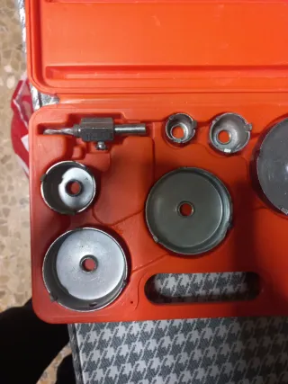 Kit de coronas de diamante Rubi para trabajos de precisión. - Incluye varias coronas de diferentes tamaños. - Estuche naranja para almacenamiento y transporte.