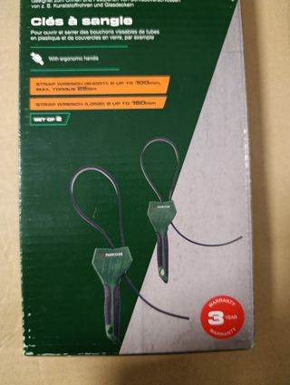 Set de llaves de correa Parkside para tuberías de plástico y metal. - Incluye dos llaves de correa. - Mangos ergonómicos.