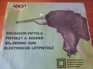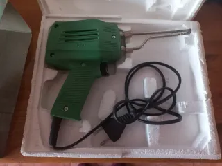 Soldador de estaño de la marca ARON en color verde. Incluye cable de alimentación con enchufe. - Mango ergonómico. - Punta de soldar. - Diseño compacto.
