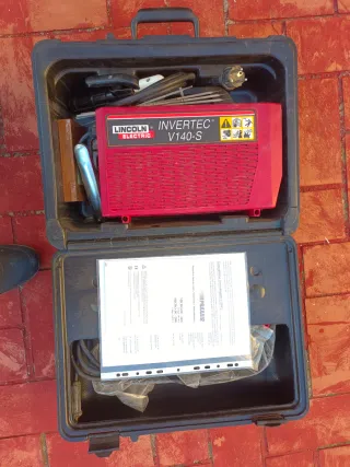 Se vende equipo de soldadura Lincoln Electric V140-S, casi nuevo, junto con una máscara de soldar. - Modelo: Invertec V140-S. - Incluye cables y accesorios. - Máscara de soldar. - Incluye manual de instrucciones. - Incluye varias cajas de electrodos, un está en perfectas condiciones y la otra tiene algunos con la punta un poco pelada de habese rozado entre ellas y además hay un tubo lleno más varios vacíos y algunas cajas para guardar electrodos.