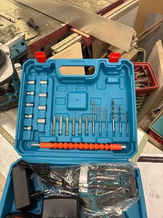 Taladro a batería con accesorios