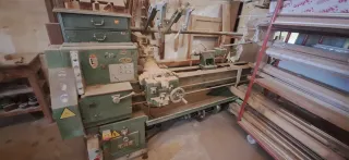 Se vende torno industrial y otra maquinaria. - Torno de metal. - Cajonera de herramientas. - Estantería con perfiles de madera.