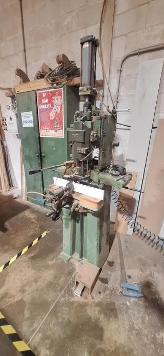 Escopleadora de taladro marca Multico, modelo PM20. Ideal para trabajos de carpintería. - Motor potente. - Botón de parada de emergencia amarillo. - Incluye broca.