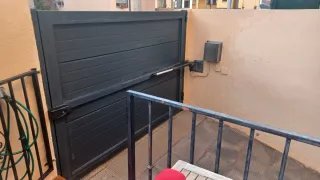 Portón abatible de color gris antracita, ideal para porches o accesos. - Diseño moderno con lamas horizontales. - Material resistente. Antigüedad 4 años con automatismo motorline. Primera marca, excelente calidad. Grosor puerta 8 cm.