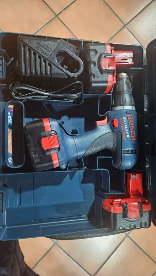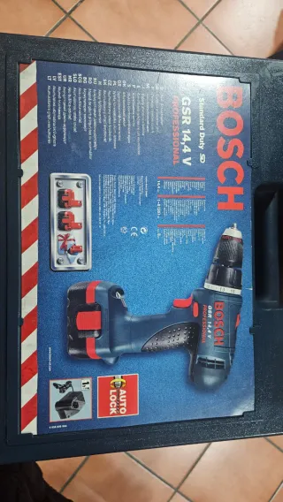 Taladro percutor Bosch GSR 14,4V Profesional, muy poco uso, solo utilizado en temas domesticos. - Modelo: GSR 14,4 V SD. - Voltaje: 14,4 V. - Incluye maletín, cargador y 3 baterías. No está en garantía y no se admiten devoluciones.