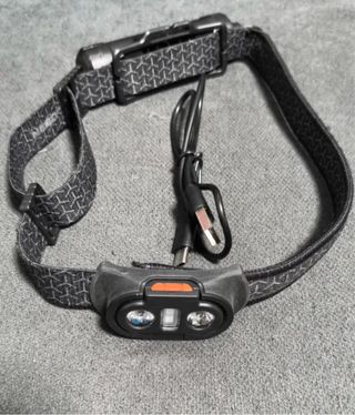 Frontal Nebo con banda ajustable. - Diseño con dos luces LED y una luz central. - Incluye cable de carga USB.