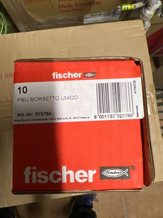 Fischer Grapa Final PMU 10. Tengo 7 cajas en total nuevas sin abrir - Modelo: PMU MORSETTO UNICO - Número de artículo: 519784 - Fabricante: Fischer Italia S.r.l. - Código de barras: 8001132028766