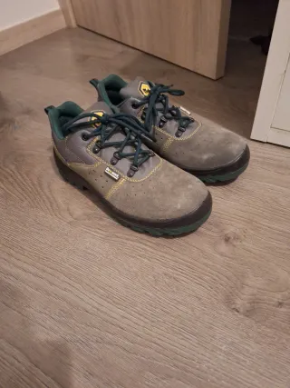 Zapatos de seguridad de la marca Be Work, ideales para el trabajo. - Color gris y verde. - Cierre con cordones. - Diseño robusto. -Talla 43