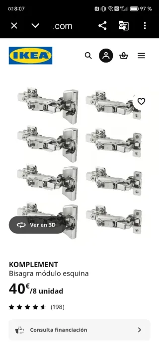 Se venden 8 bisagras KOMPLEMENT de IKEA para módulos de esquina.Regalo La bolsa de la 2 foto - Apertura de 160 grados. - Acabado metálico.