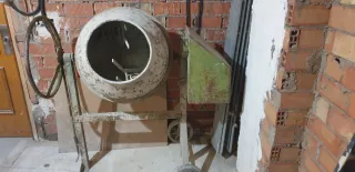 Hormigonera eléctrica para trabajos de construcción o reformas. Ideal para mezclar cemento, mortero y otros materiales está nueva muy pocas horas de uso y sin golpear - Tambor de gran capacidad. - Estructura metálica resistente. - Ruedas para facilitar el transporte.