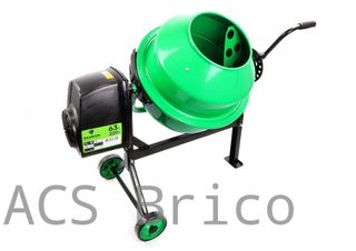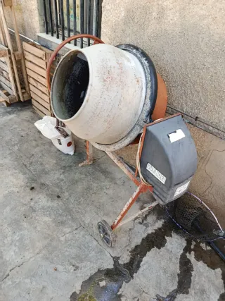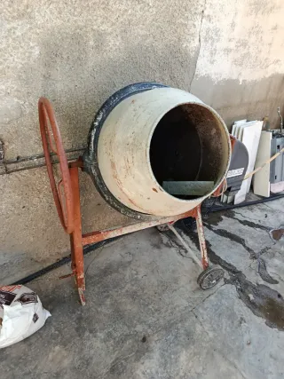 Hormigonera de obra para mezclar cemento y otros materiales. - Tambor de gran capacidad. - Estructura metálica robusta. - Ruedas para facilitar el transporte.