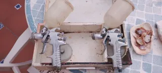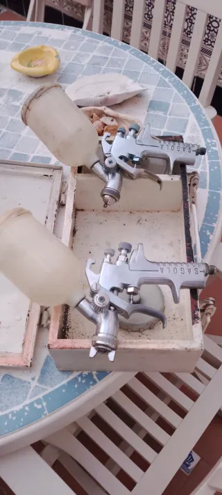 Se venden dos pistolas de pintura SAGOLA con depósito de gravedad. Ideales para trabajos de pintura. - Marca: SAGOLA - Tipo: Pistola de gravedad - Cantidad: 2 unidades