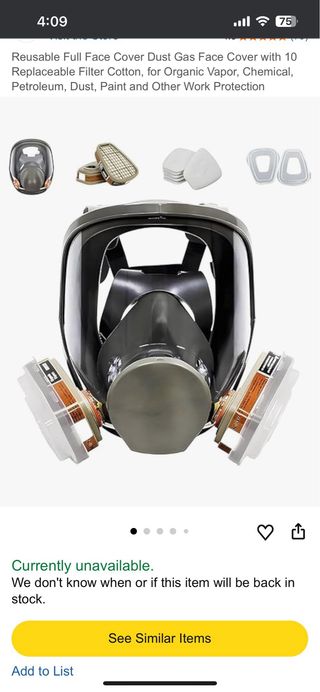 Se vende máscara respiratoria de cara completa, en muy buen estado. Incluye filtros nuevos para el aire, sin usar, que ayudan a filtrar polvo, partículas y vapores, mejorando la respiración y la protección. Características: • Máscara reutilizable • Filtros de aire nuevos incluidos • Ajuste cómodo y seguro • Visor amplio para mejor visibilidad • Ideal para trabajos de pintura, bricolaje, limpieza, talleres o ambientes con polvo Se entrega tal como se ve en las imágenes. Producto práctico y resistente.