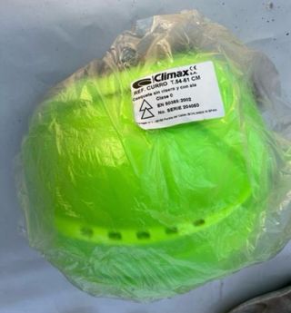 Casco de seguridad para obra en color verde fluorescente, marca Climax. Diseñado para protección. - Color: Verde fluorescente - Marca: Climax - Diseño ventilado